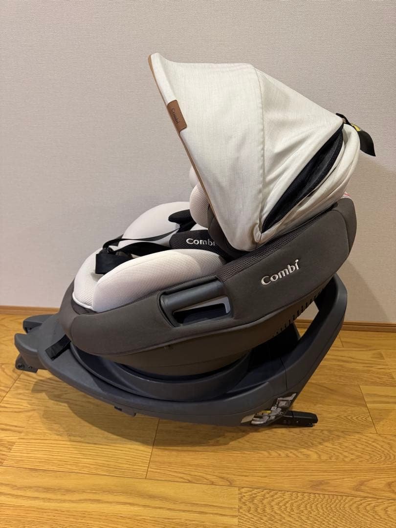 2019年に購入した、エールベベ KURUTTOの5iチャイルドシートです。新生児〜4歳頃まで使用できます。取り外して洗える物は全て洗濯済みです。ただ、写真13-15枚目にありますヘッドサポート内のヘッドクッションだけございません。ご了承下さい。足元の取っ手でチャイルドシートの向きを変えられるので、乗降時にとても便利でした。ミルクの吐き戻しやうんち漏れ等もなく、状態は比較的綺麗です◎サンシェードは黒のギンガムチェック柄なので、性別問わずお使い頂けます◡̈写真6枚目の通り、全て覆い隠せるほど大きく広げられるのもとても重宝しました。子供が産まれた時から使用している、思い入れのある品です。大切にお使い頂ける方にお譲りできたら嬉しく思います♩※大物の為、梱包に少々お時間頂きますがご了承頂けますと幸いです。エールベベチャイルドシート新生児クルット5iAILBEBE回転式グレーブラック特徴···ISOFIX種別···チャイルドシート人気モデル···クルット5i
